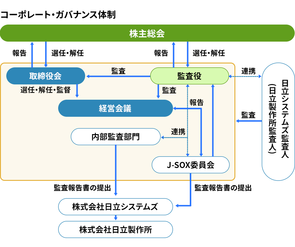 内部統制システムについては、日立グループ共通の経営者評価重点方針に則って運用・整備しています。