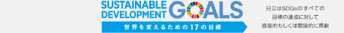 多岐にわたる事業分野をもつ日立は、SDGsの達成に幅広く貢献できると考えています。そのため、上記を除く残り4つの目標に対しても、短・中期的にどのように貢献できるかという点について、さらに検討していきます。日立は、SDGsのそれぞれの目標は相互にかかわっていると理解しており、SDGsの17の目標すべての達成に向けて、直接的、間接的に貢献していきます。